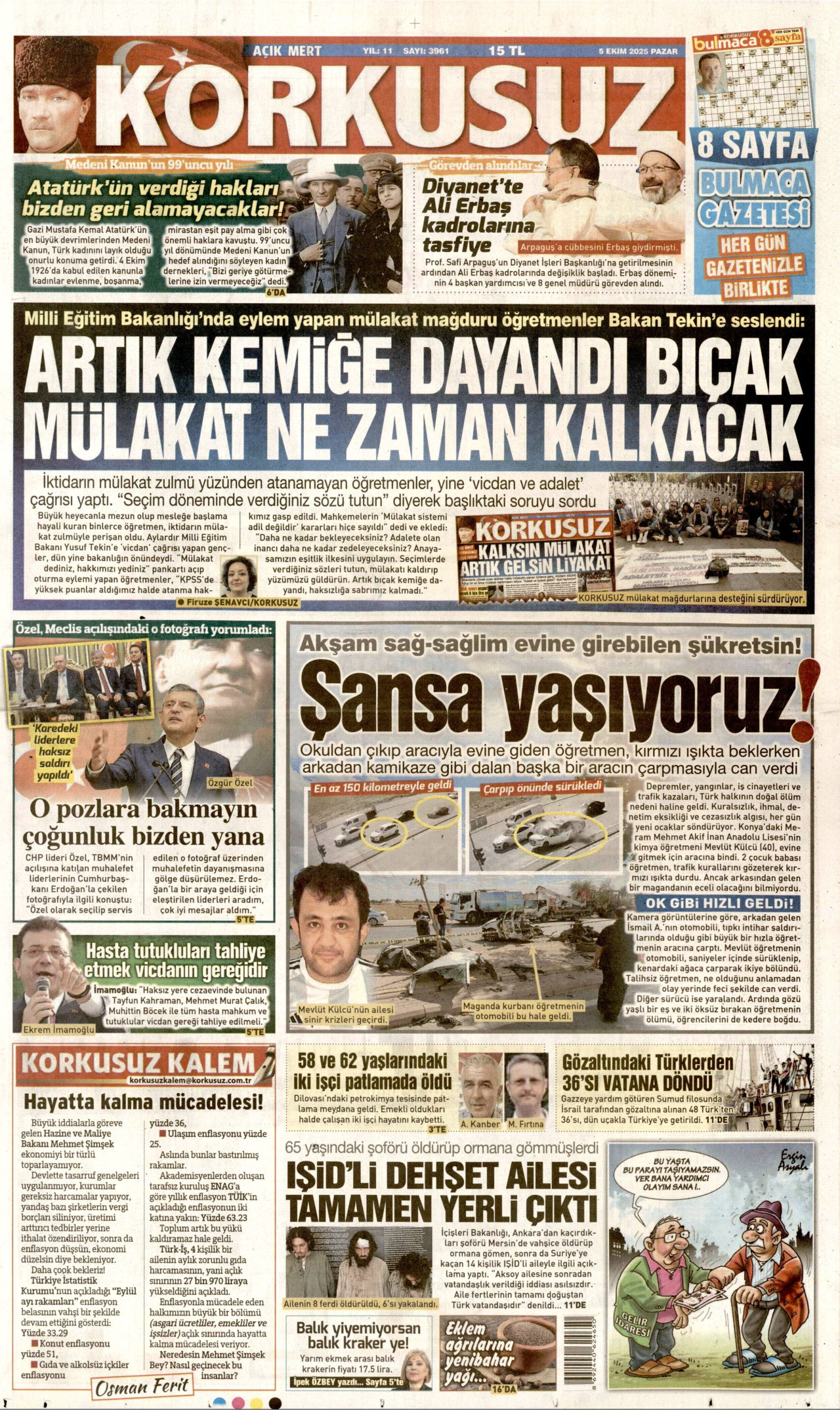 KORKUSUZ Gazetesi 05 Ekim 2025, Pazar Günü Manşeti