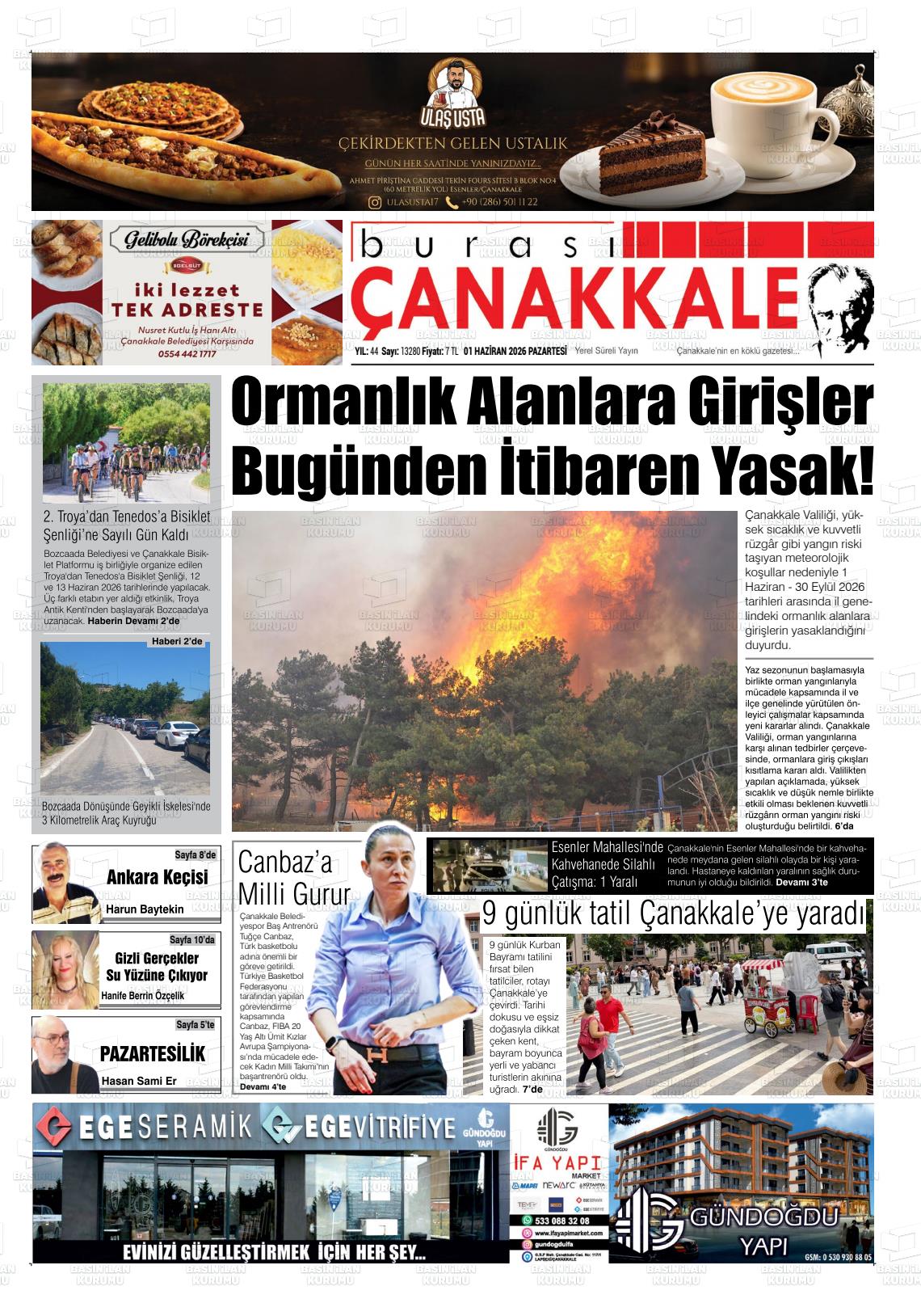 Çanakkale Yerel Gazeteleri 23 Kasım 2025, Pazar Günü Manşeti