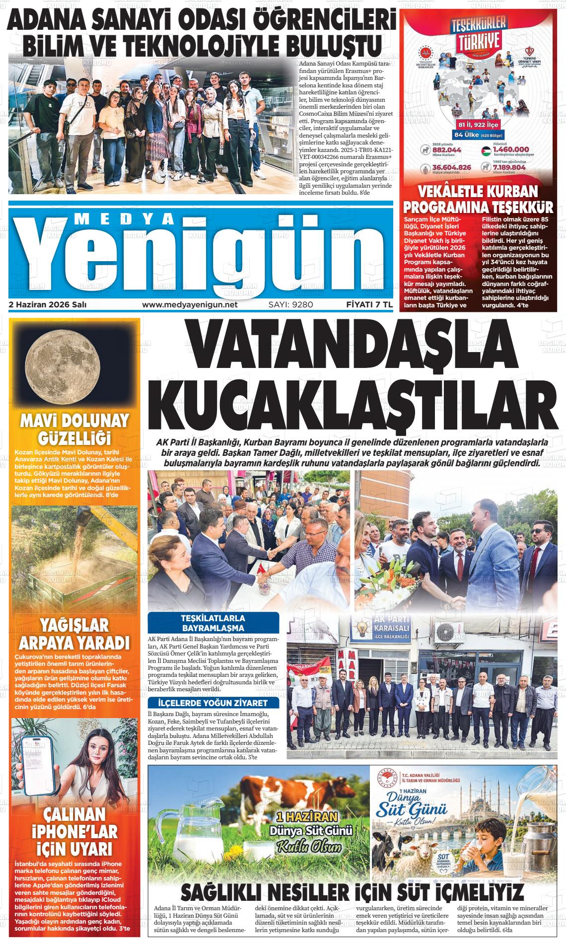 Adana Yerel Gazeteleri 23 Kasım 2025, Pazar Günü Manşeti