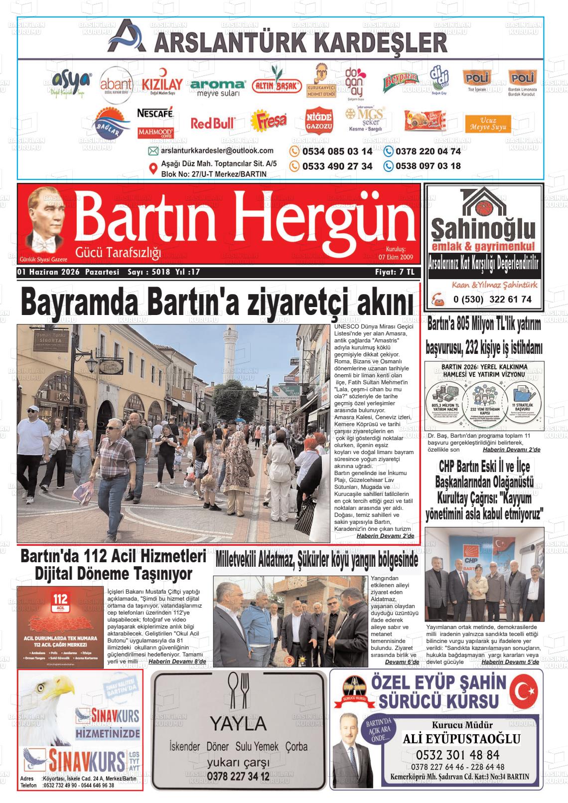 Bartın Yerel Gazeteleri 17 Nisan 2026, Cuma Günü Manşeti