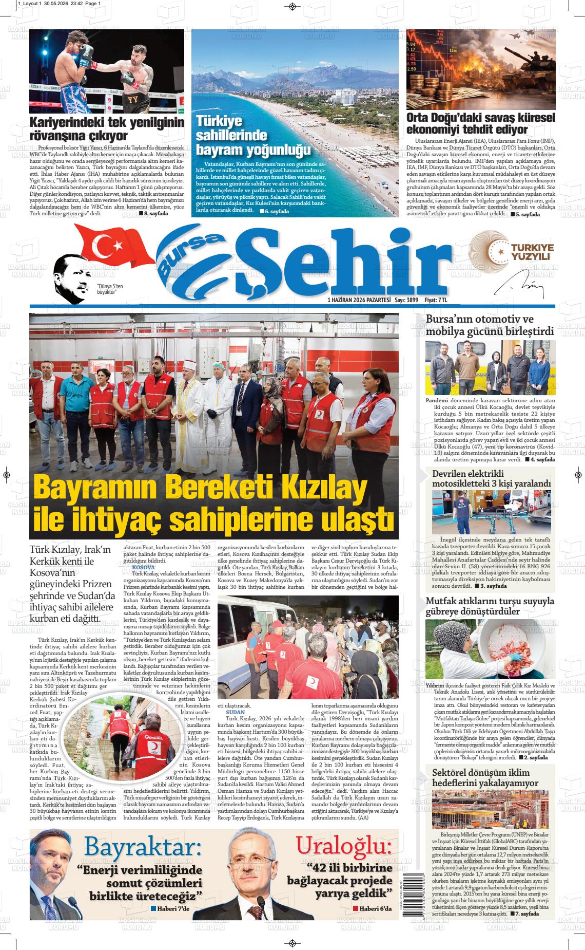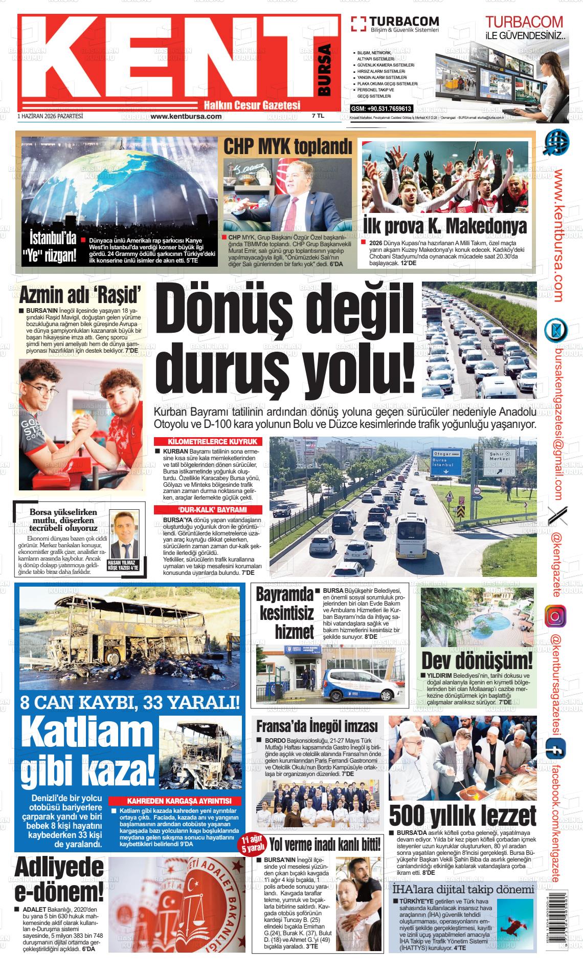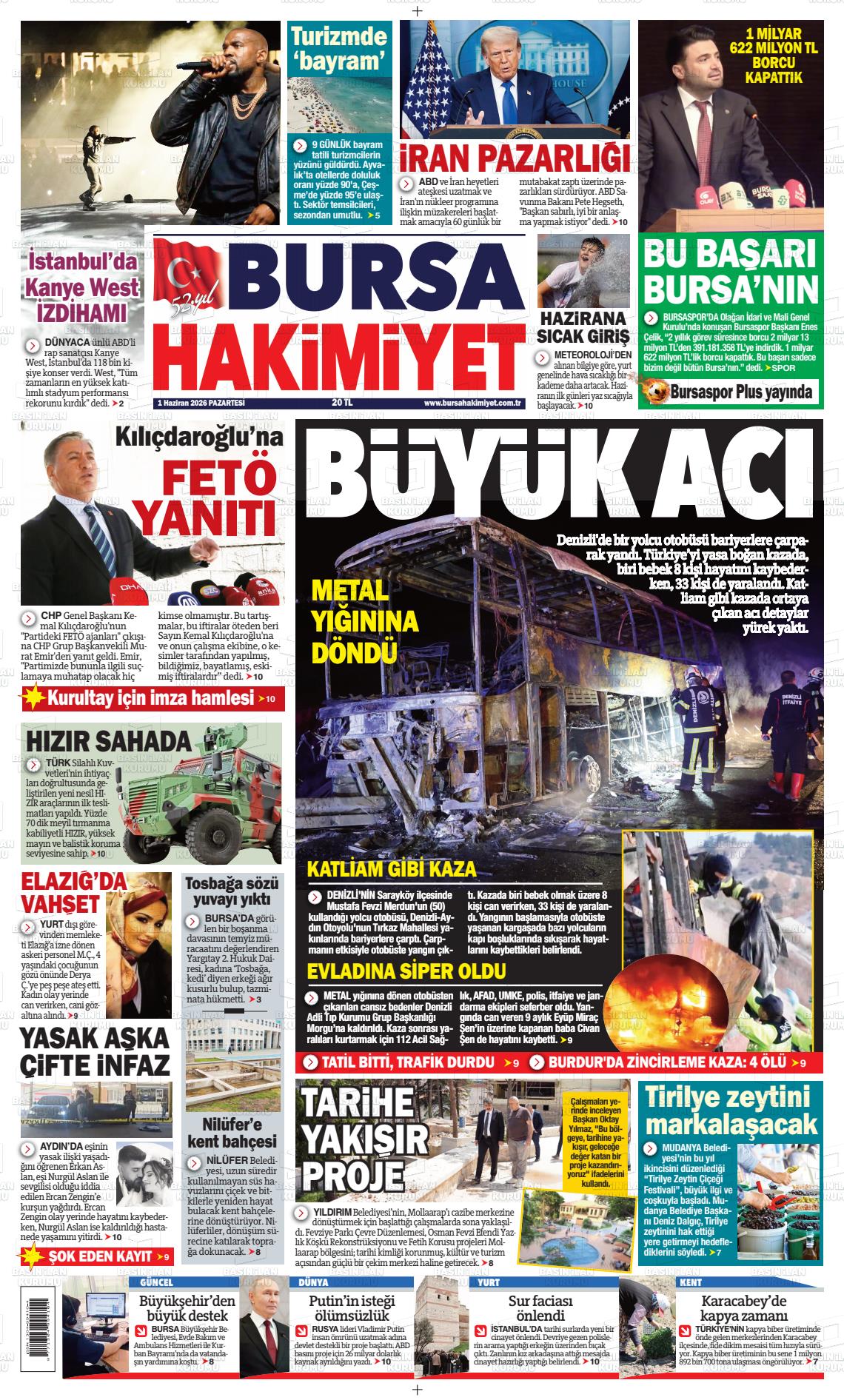 Bursa Yerel Gazeteleri 23 Kasım 2025, Pazar Günü Manşeti