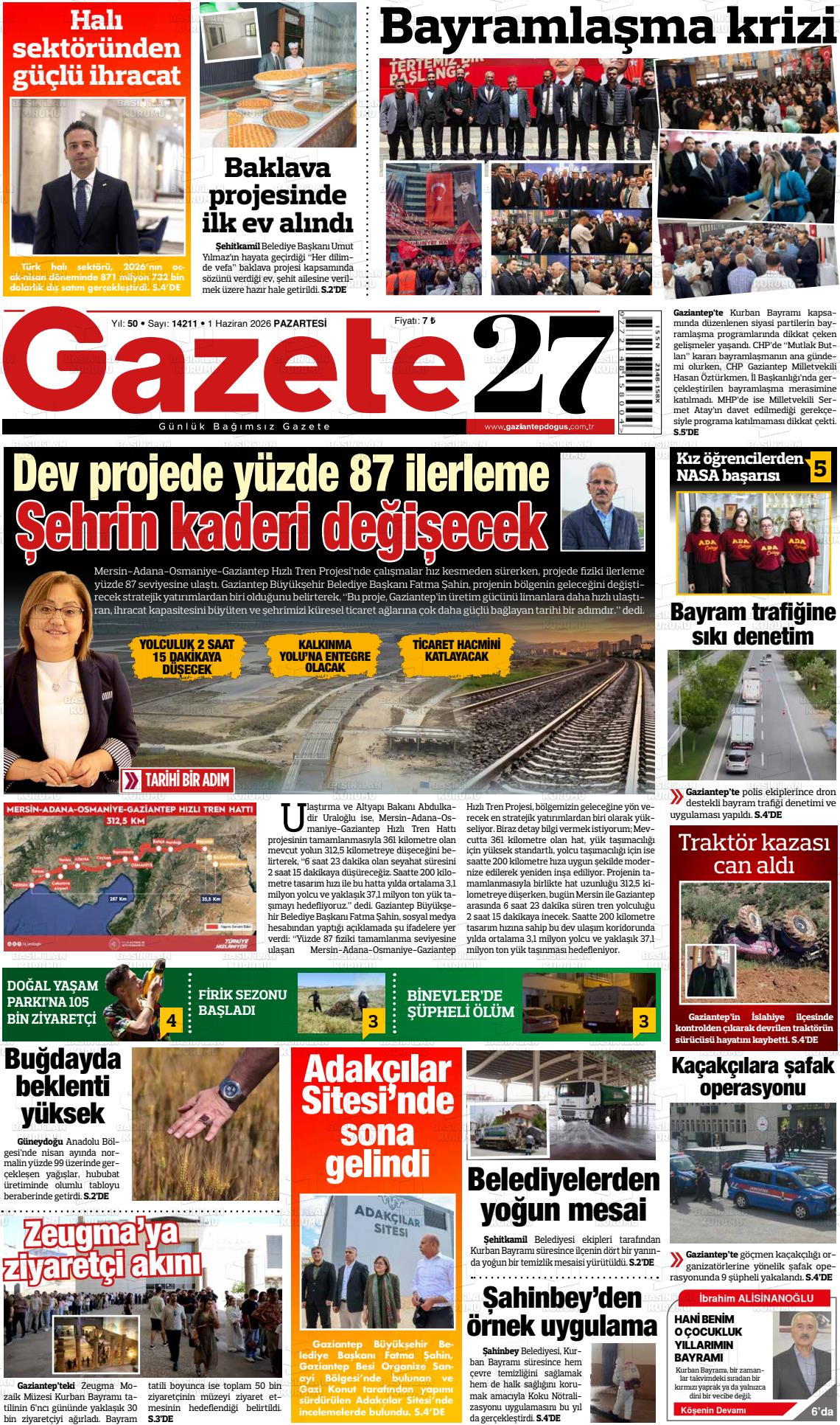 Gazİantep Yerel Gazeteleri 17 Nisan 2026, Cuma Günü Manşeti