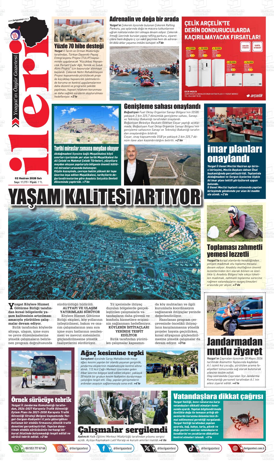 Yozgat Yerel Gazeteleri 23 Kasım 2025, Pazar Günü Manşeti